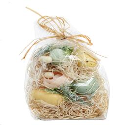 Набор из украшений для пасхальной композиции, а так же оформления подарков. Состоит из искусственных веток и цветов, декоративных яиц и стружки.
