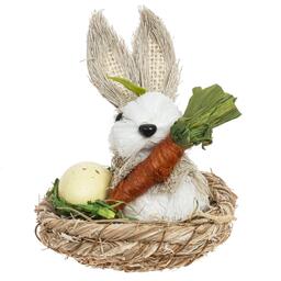 Декоративное гнездо как украшение грядущего праздника Пасхи. В гнезде милый кролик с морковкой и декоративное яйцо. Это изделие подойдет для весенней и пасхальной композиции.