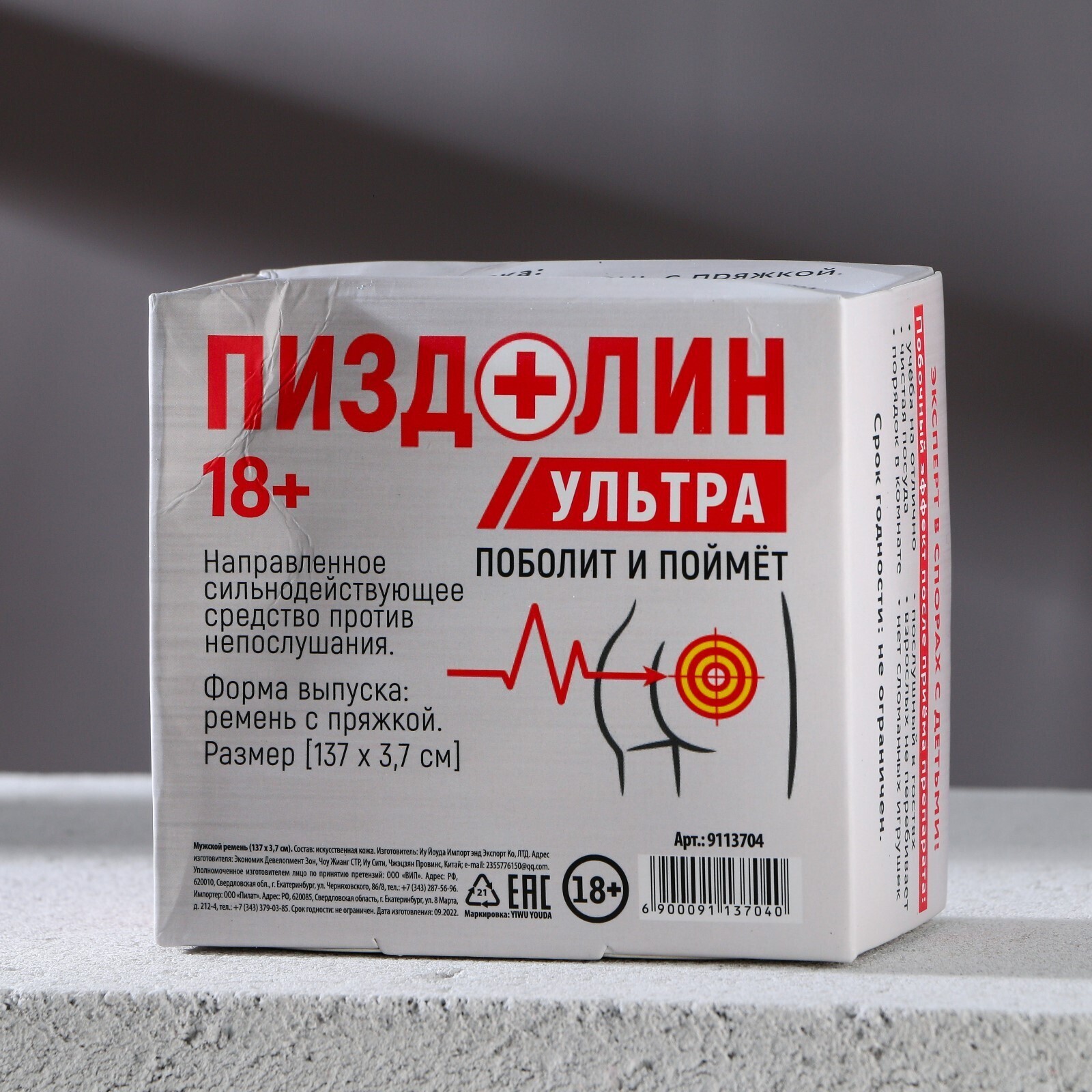 УЦЕНКА Мужской ремень "Пизд*лин УЛЬТРА", кожзам, цвет чёрный