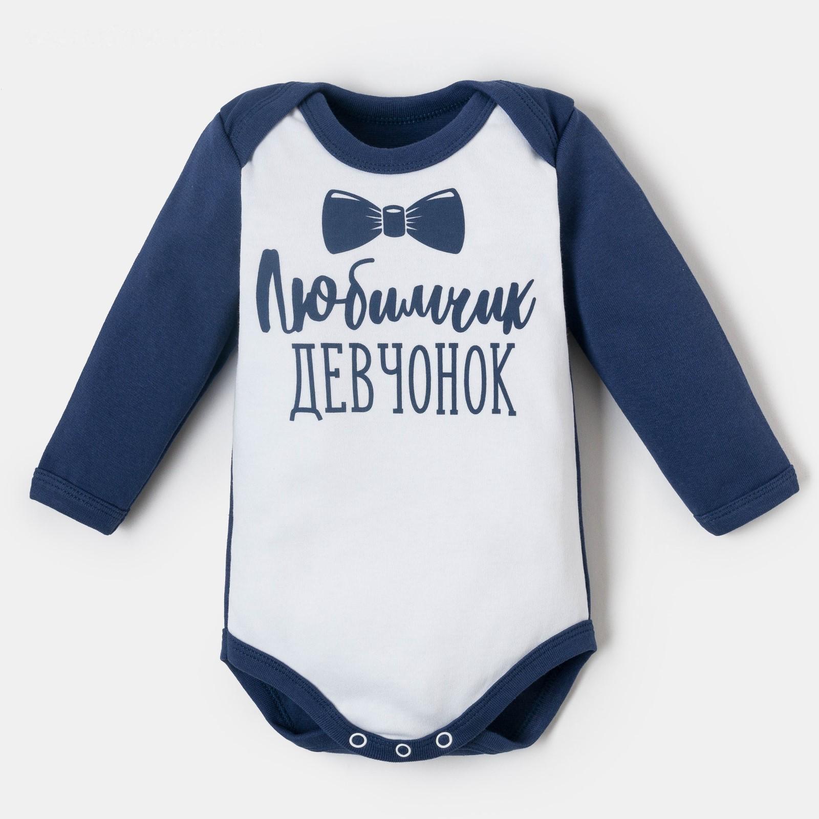 Боди Крошка Я "Любимчик девчонок", белый/синий, рост 62-68 см