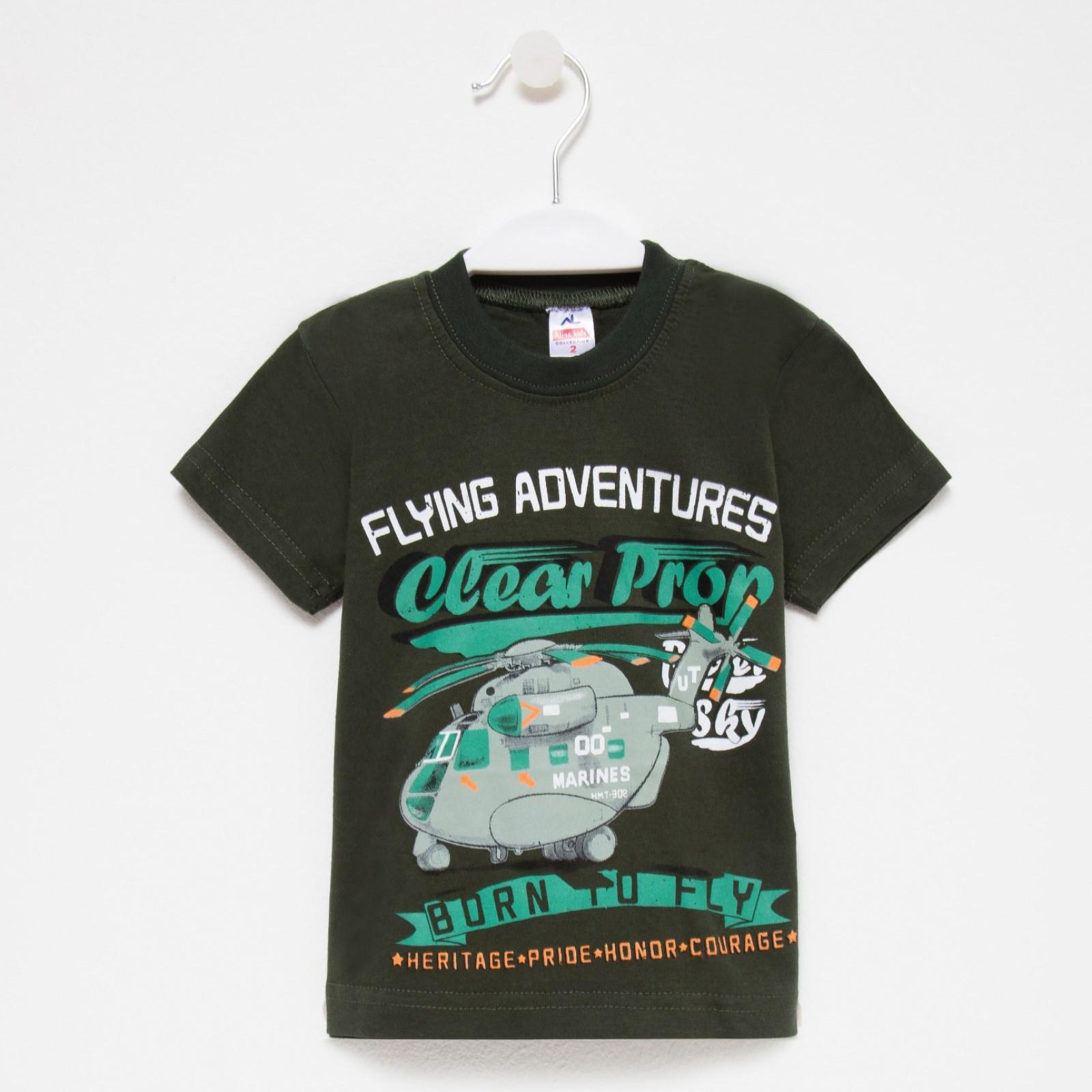 Футболка для мальчика, цвет т зеленый/вертолет, рост 86 см