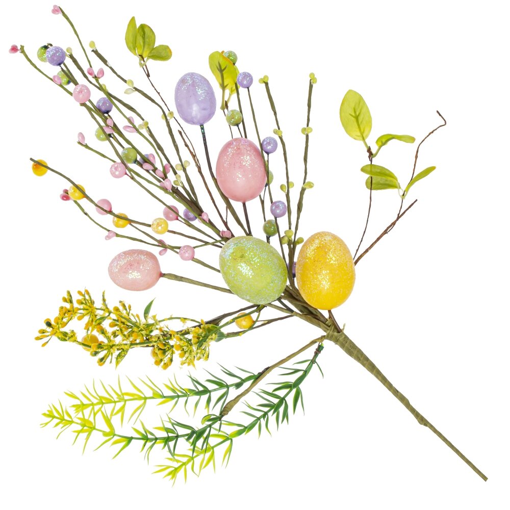 Этот милая пасхальная ветка с искусственными цветами и декоративными яйцами будет чудесным подарком близким людям, или украшением пасхального интерьера.