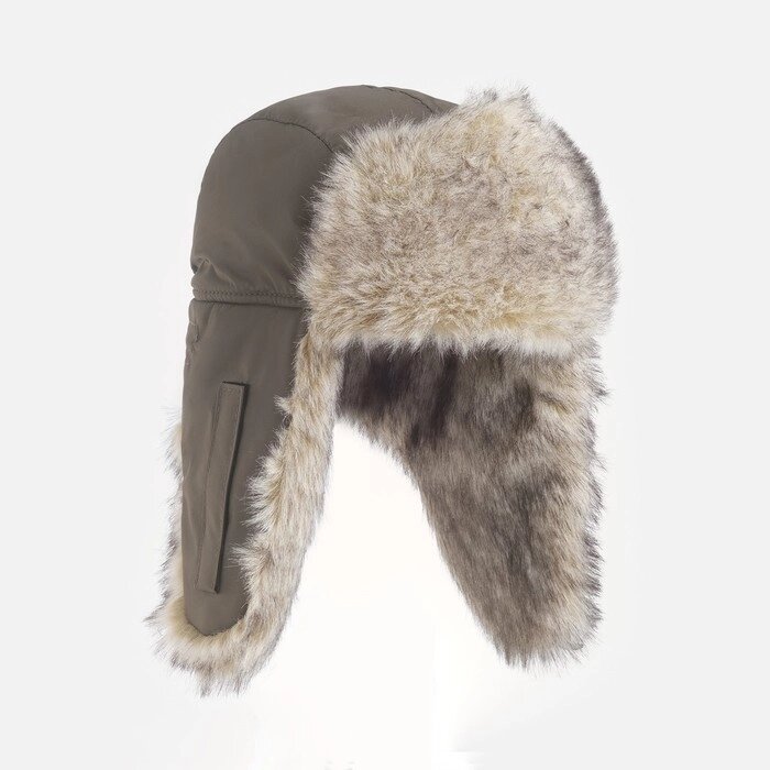 Шапка-ушанка "Волк" с маской, ткань - таслан, подклад - Polar Fleece 180 гр/м2, хаки, р. 58