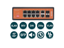 Промышленный неуправляемый коммутатор WI-PS212GF-I предназначен для применения в индустриальных сетях предприятий. Коммутатор оснащен 8 портами 10/100Base-Т с поддержкой PoE 802.3at/af, 2 портами 10/100/1000Base-Т, 2 портами 1000Base-X SFP. Защищен от грязи, пыли и влаги, устойчив к электромагнитным помехам, нестабильному входному напряжению и сложным климатическим условиям. Гарантия — 5 лет. WI-PS212GF-I выполнен в металлическом корпусе и допускает различные способы монтажа - DIN-рейка, настольное или настенное крепление. Коммутатор предназначен для эксплуатации в экстремальных температурных условиях от –40°C до +80°C и влажности до 90%. 8 портов данного коммутатора поддерживают стандарт IEEE802.3at/af PoE для подключения таких устройств как IP-видеокамеры или других совместимых устройств. При этом общий бюджет коммутатора может достигать 250Вт в зависимости от мощности подключенного источника питания. WI-PS212GF-I оснащен дополнительными переключателями режимов работы Watchdog/VLAN/Extend/PoE Priority. Функция Watchdog - автоматическое определение зависших IP-камер или другого оборудования и перезагрузка питания PoE на портах. Режим VLAN — режим изоляции портов; позволяет изолировать трафик подключенных устройств на физическом уровне, что ограничивает их общение на 2-м и 3-м уровнях, и гарантирует безопасность передачи контента.Режим Extend — режим передачи PoE на расстоянии до 250 метров; позволяет преодолеть барьер в 100 метров, стандартный для Ethernet-сетей, и подключать удаленные устройства не применяя PoE-репитеры.Функция PoE Priority позволяет приоритизировать на портах необходимую мощность для PD устройств. Порт с низшим приоритетом будет отключен при превышении бюджета PoE. Технические характеристики Интерфейсы 8 портов 10/100M 2 порта 10/100/1000M 2 порта 1000М SFP Физические среды 10BASE-T: UTP кабель категорий 3, 4, 5 (макс. 100м) 100/1000BASE-TX: UTP кабель категорий 5, 5e, 6 или выше (макс. 100м) 1000BASE-X SFP Охлаждение Пассивное Внешний источник питания Поддержка трёх независимых источников питания - Входное напряжение DC 37-57В - Входное напряжение DC 12-57В(37-57В для работы функции PoE) PoE порты (RJ45) PoE порты с 1 по 8 (стандарт 802.3 af/at) Мощность на порт: до 30Вт Пропускная способность 9.6Гбит/с Таблица mac-адресов 8K Jumbo-фрейм 10k Размеры 166*124*52 мм Температура и влажность Рабочая температура: -40℃~80℃ Метод коммутации Store-And-Forward EMS IEC 61000-4-2 ESD Level 4 IEC 61000-4-3 RS Level 4 IEC 61000-4-4 EFT Level 4 IEC 61000-4-5 Surge Level 4 IEC 61000-4-6 CS Level 4 Расширенные функции Передача PoE и данных на расстояние до 250м Watchdog PoE Priority Mac Address Auto-Learning And Auto-Aging Store and forward IEEE 802.3x flow control for Full-duplex Mode Backpressure for Half-duplex Mode