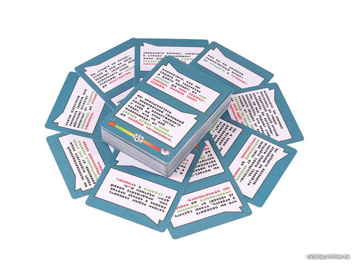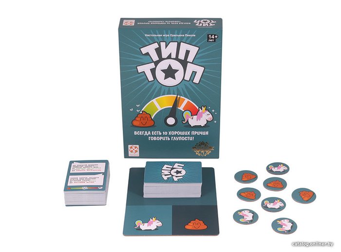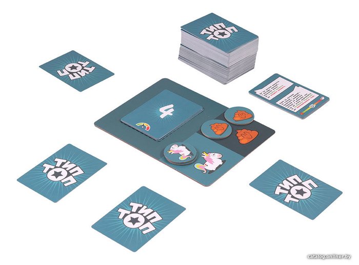 • Комплектация 125 карт с темами; 10 карт с номерами; 8 жетонов; 1 планшет, правила игры.