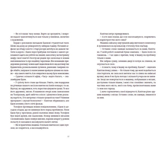 «Часу немає» — це роман-пробіжка, який не дає перевести подих. Це одіссея вулицями Києва та споконвічне повернення до самого себе. Це лабіринт із зарядженими рушницями, кожна з яких обов’язково вистрілить. Це історія про те, що навіть найбільший невдаха одного разу може змінити світ. І, звісно, це книга про час. А точніше — про його відсутність.