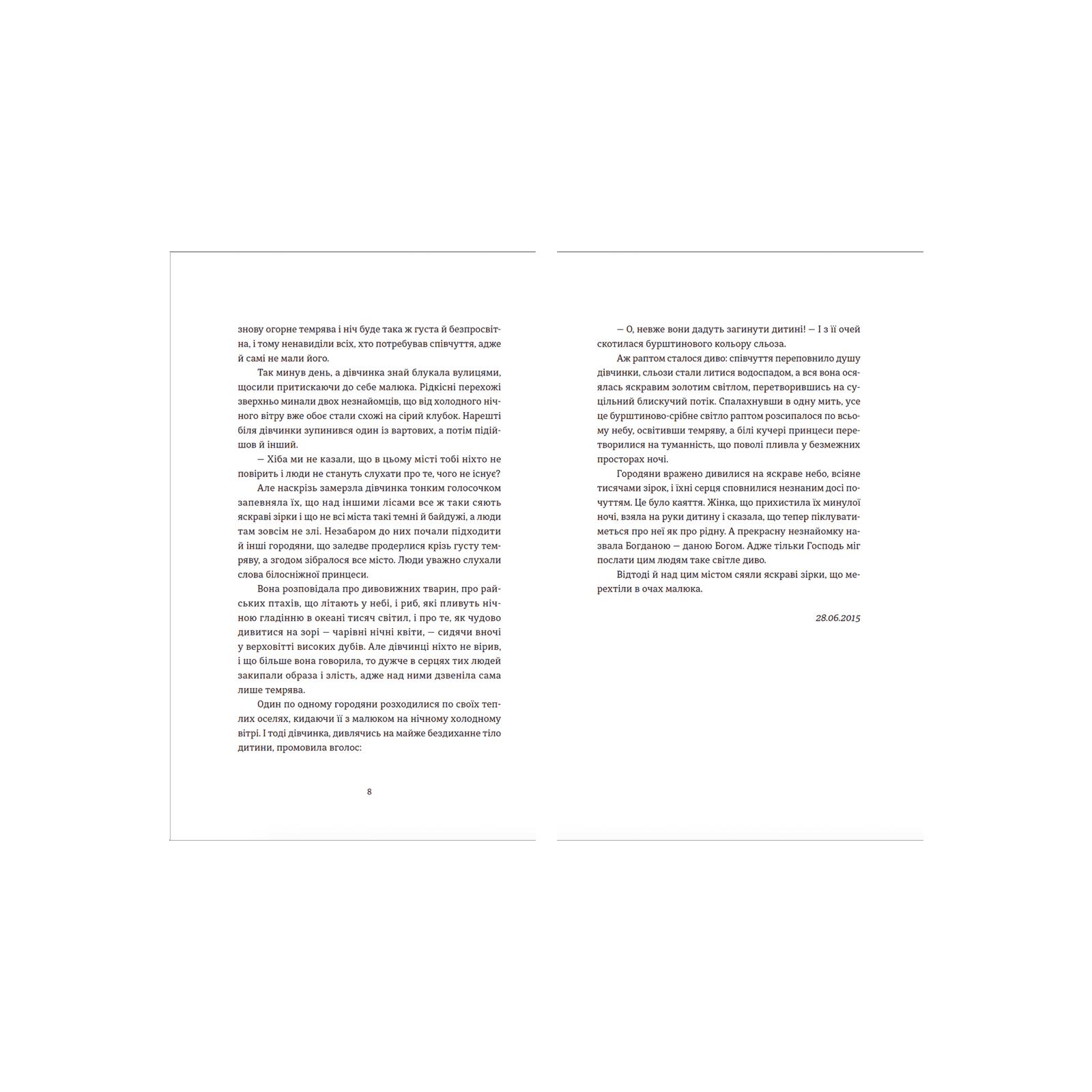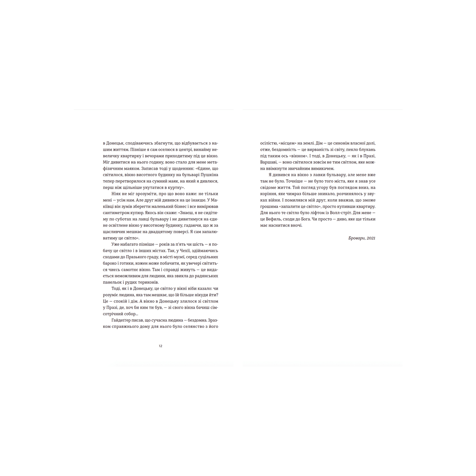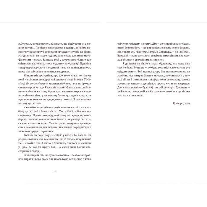 У новій книжці короткої прози поет, прозаїк і публіцист Станіслав Асєєв постає перед нами як тонкий лірик, твори якого виринають ніби з позачасся, із сутінків, — так, наче бачиш змальовані події уві сні. Відомий широкому загалу насамперед як публіцист, автор книжок «"Світлий шлях" : історія одного концтабору» та «В ізоляції» (за останню здобув Шевченківську премію у номінації «Публіцистика та журналістика») Станіслав здивує читачів пронизливими різножанровими текстами, що були написані у період між 2011-2021 роками. У них чарівна леді своїми сльозами освічує темряву байдужого міста, священник і убивця змушені ділити одну в'язничну камеру на двох, коханці вирушають на край світу, а бізнесмен-торговець знай прораховує на калькуляторі усе своє життя.