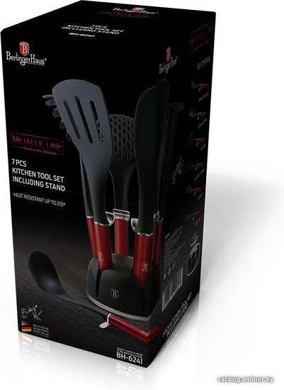 • Состав набора картофелемялка, ложка, ложка для спагетти, лопатка, подставка, половник, шумовка