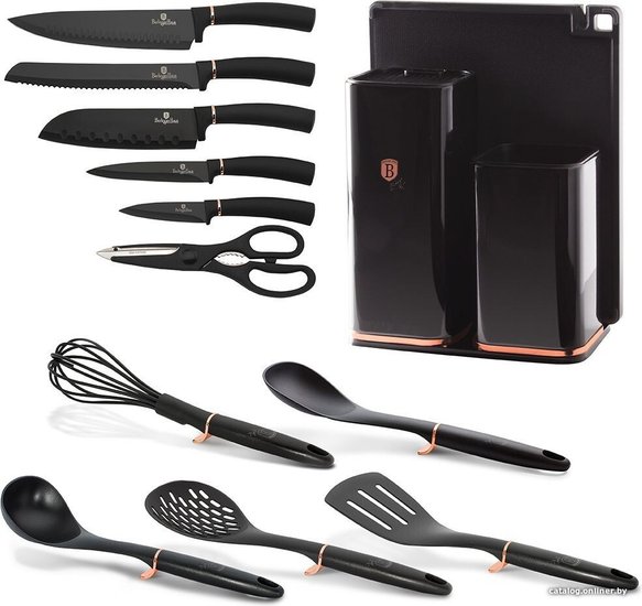 - Состав набора венчик, ложка, лопатка, подставка, половник, разделочная доска, шумовка