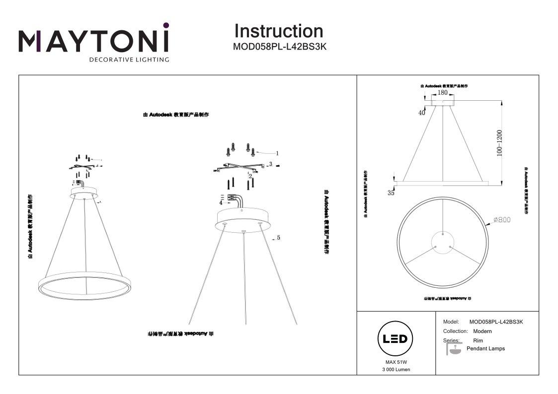 Подвесная люстра Rim MOD058PL-L42BS3K