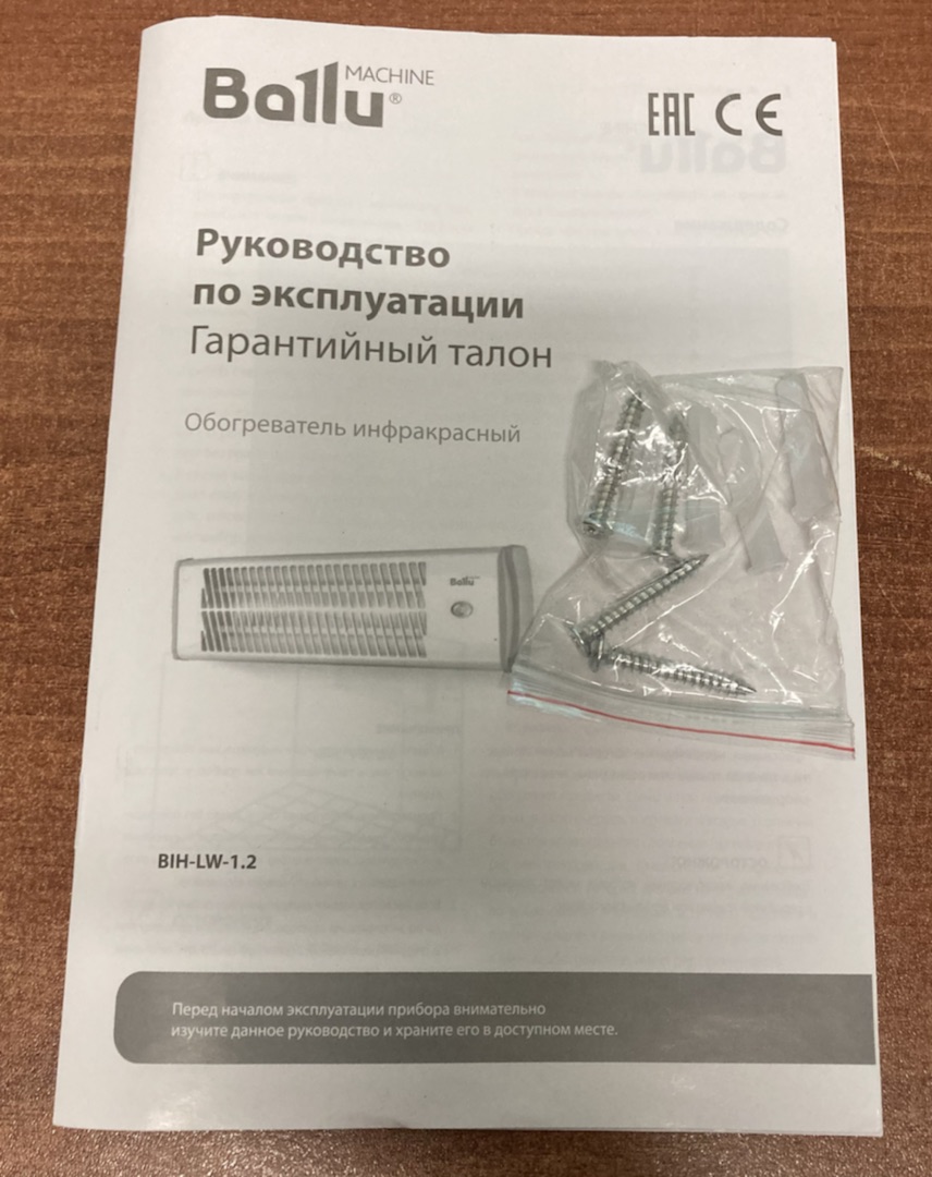 Описание товара Обогреватель инфракрасный BALLU BIH-LW-1.2 состояние хорошее