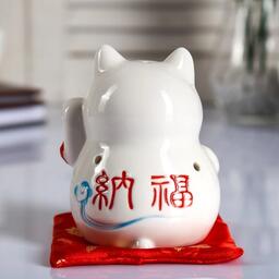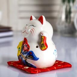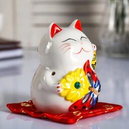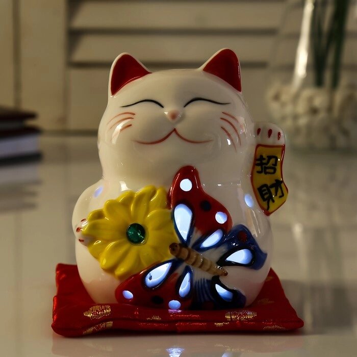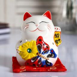 Сувенир керамика свет "Кот манэки-нэко с бабочкой и цветком" 10,5х8х7,5 см