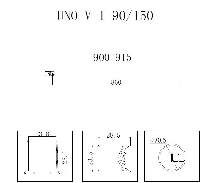 Шторка на ванну Belbagno UNO-V-1-90/150-C-Cr 90x150 прозрачное стекло / профиль хром