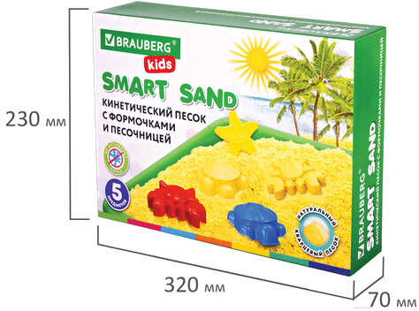 • Комплектация инструмент (лопатка), формочка/емкость (черепаха, морская звезда, краб), песочница (20х30х6 см)