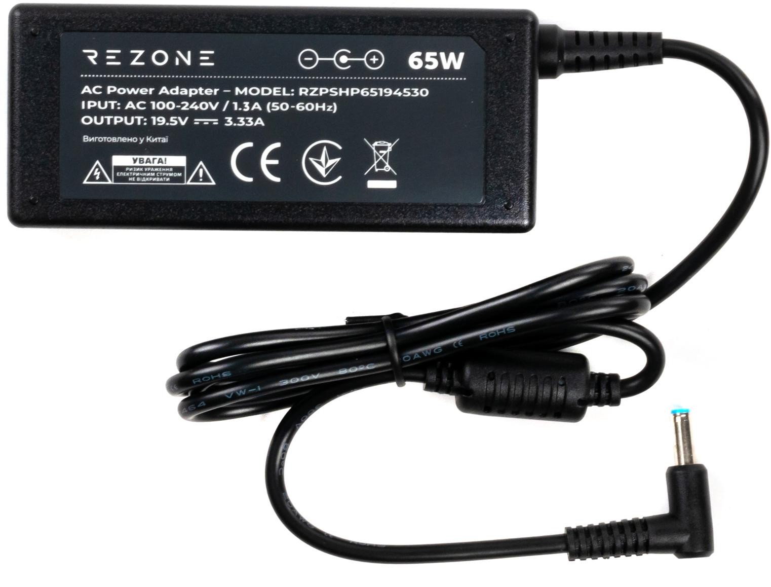 Блок живлення до ноутбуку Rezone HP 65W 19.5V 3.33А 4.5*3.0 (RZPSHP65194530)