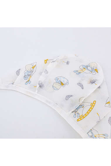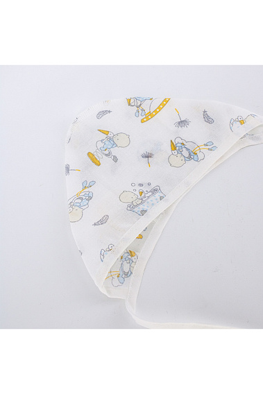 Мягкий чепчик с удобными завязками с забавным принтом в виде малыша и бусла. Благодаря швам наружу на нежной коже малыша и не возникнет раздражение. Чепчик выполнена из натурального неаллергенного материала, не вызывает раздражения, приятная на ощупь.