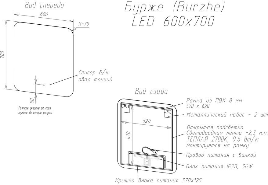 зеркало континент burzhe led 60x70 ореольная холодная подсветка и б/к сенсор