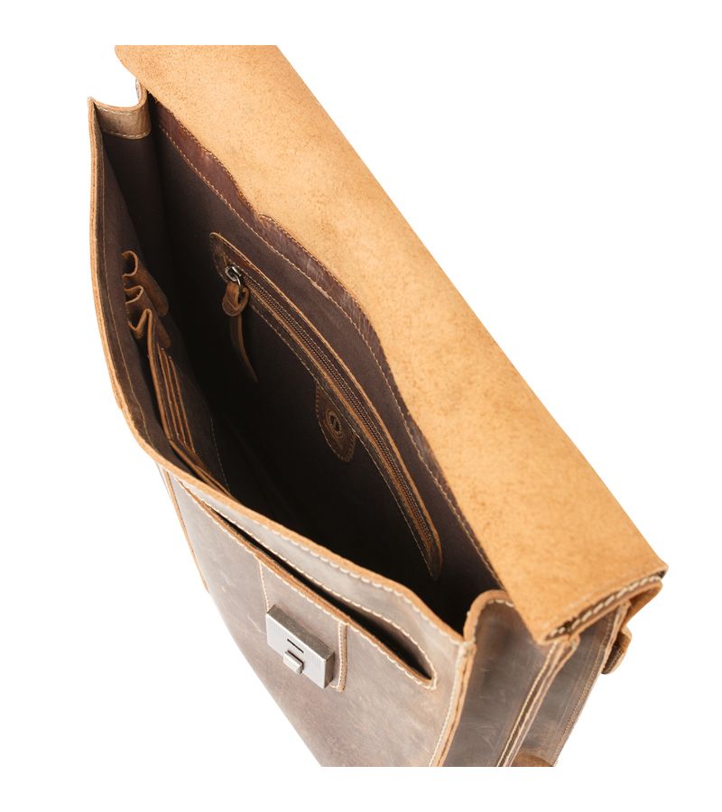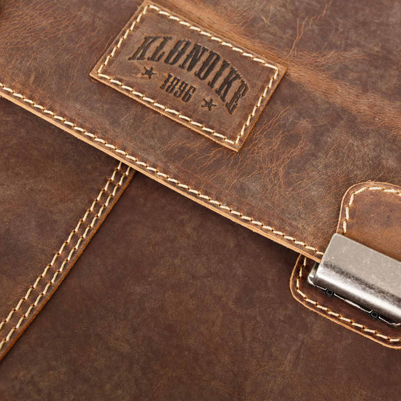 Портфель серии «Native» является классическим образцом портфеля фирмы «Klondike» в коллекции мужских сумок. В этом замечательном портфеле из натуральной кожи очень удобно носить нужные Вам документы в университет или на работу. Этот портфель оснащен съемным регулируемым ремнем со смягченной частью для плеча, большим отделением, 2 корманами-органайзерами, 2 подразделениями для ручек и дополнительным внутренним отделением на молнии. Портфель так же имеет мягкое отделение для ноутбука или планшета размером 30x25 см. Элегантное тиснение «Klondike» на лицевой стороне и небольшое, ненавязчивое тиснение c надписью made with passion на тыльной стороне, мастерски сделаны вручную на высочайшем уровне. Прочные металлические части латунного цвета подчеркивают высокое качество продукта. Благодаря своим размерам (длина - 40 см, высота - 31 см и глубина - 11 см) портфель позволяет хранить многочисленные вещи, например, большую папку для документов и т.д. Этот портфель гарантирует содержимому вашей сумки особую защиту благодаря дополнительной молнии и высококачественным металлическим замкам, спрятанным за декоративными пряжками. Декоративная пряжка украшает внешний вид портфеля. Портфель фирмы «Klondike» – надежный компаньон на вашей стороне.