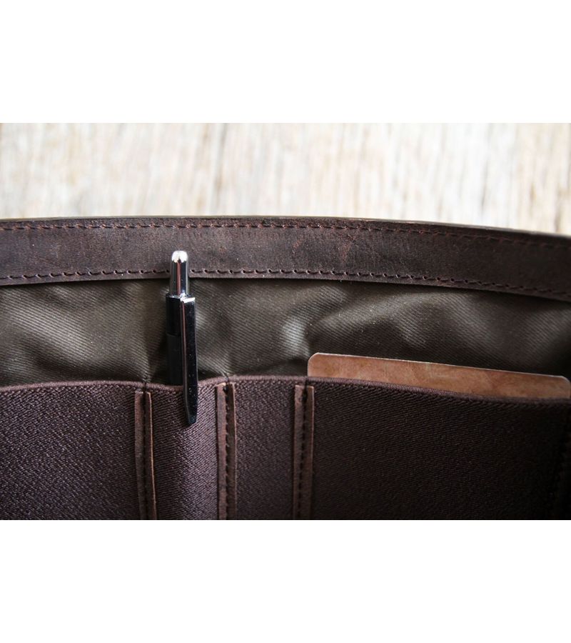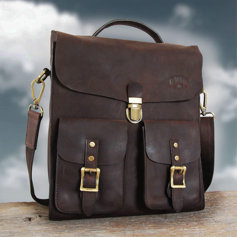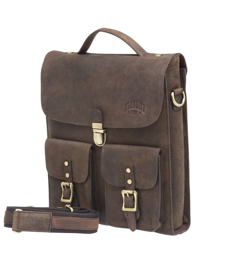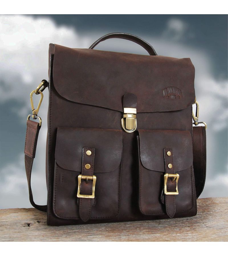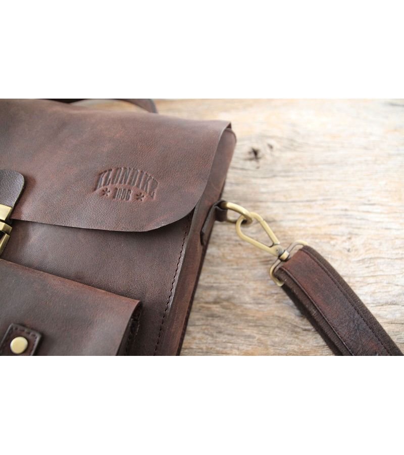 Сумка «Бретт» фирмы «Klondike» выгодно отличается по стилю от других сумок для документов. Её характерная особенность – два больших отделения снаружи на магнитных замках, которые предоставляют быстрый доступ к содержимому сумки. Сумка оснащена съемным ремнем на плечо, который регулируется на разные длины. Также сумка содержит 2 подразделения для ручек, 2 больших кармана и мягкое отделение для планшета размером 24x22см. Дополнительный кожаный ремень сзади позволяет прикреплять портфель к чемодану. Элегантное тиснение «Klondike» на лицевой стороне и небольшое, ненавязчивое тиснение c надписью made with passion на тыльной стороне, мастерски сделаны вручную на высочайшем уровне. Прочные металлические части латунного цвета подчеркивают высокое качество продукта. Благодаря своим размерам (длина – 30 см, высота - 35 см и глубина - 7 см) сумка позволяет хранить многочисленные вещи, например, большую папку и вещи схожего размера. Высококачественный металлический замок обеспечивает быстрый доступ к содержимому сумки. Сумка фирмы «Klondike» – надежный компаньон на вашей стороне.