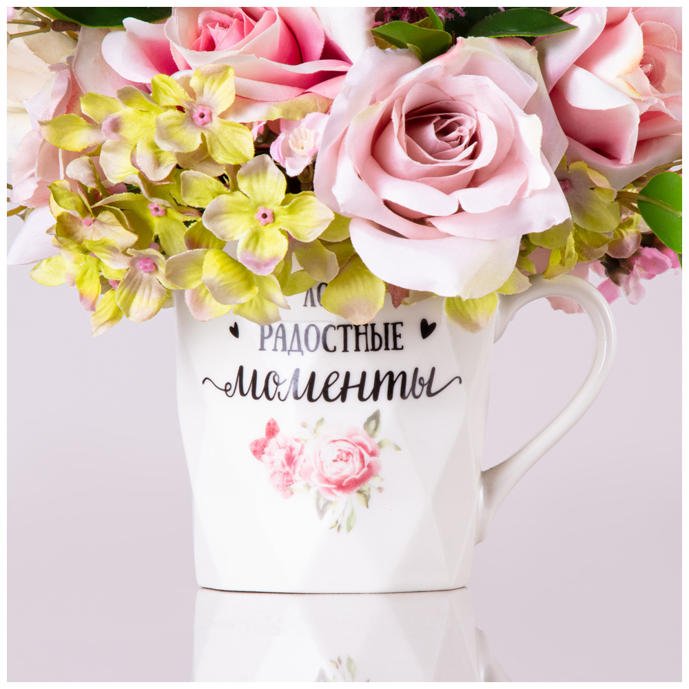 ЦВЕТОЧНАЯ КОМПОЗИЦИЯ В КРУЖКЕ "РАДОСТНЫЕ МОМЕНТЫ" ШИРИНА 18 см*ВЫСОТА 20 см- БЕЗ УПАКОВКИ 23-2326