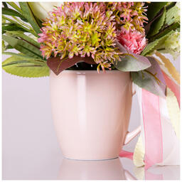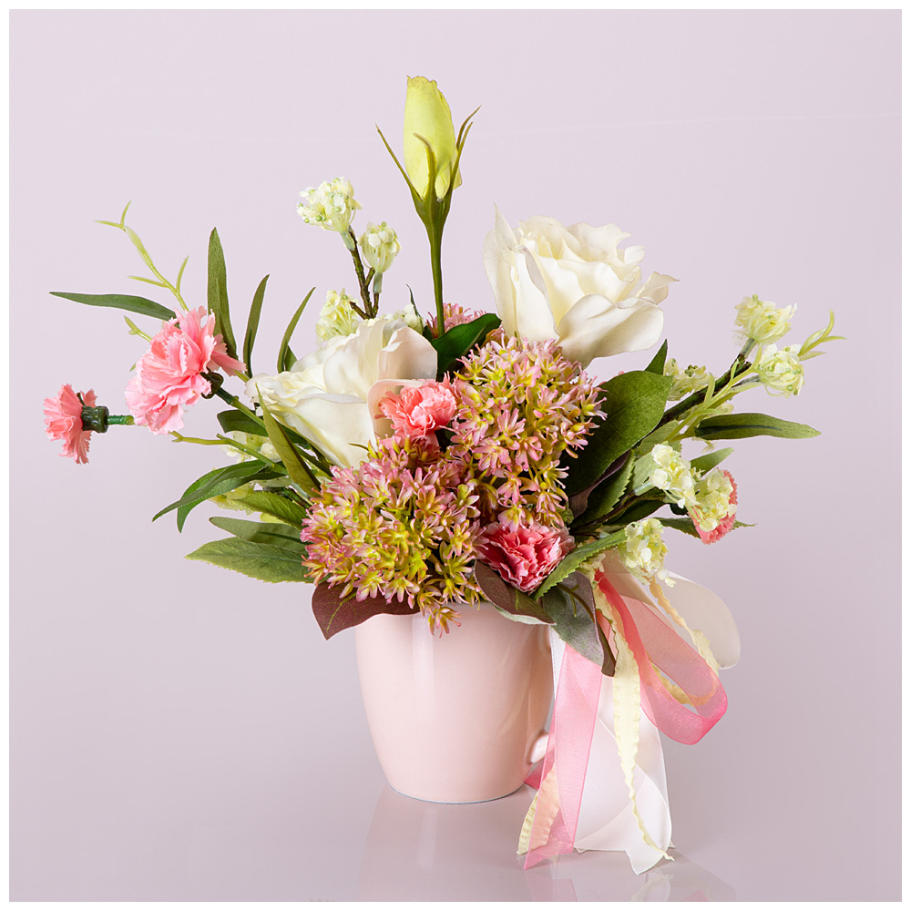 ЦВЕТОЧНАЯ КОМПОЗИЦИЯ В КРУЖКЕ "ВЕСЕННЯЯ ПОРА" ШИРИНА 29 см*ВЫСОТА 29 см- БЕЗ УПАКОВКИ 23-2329