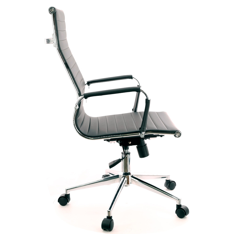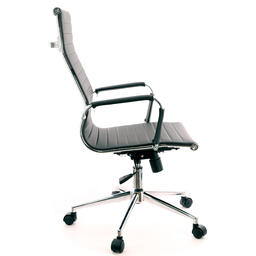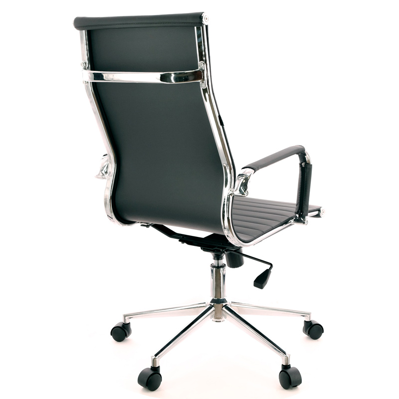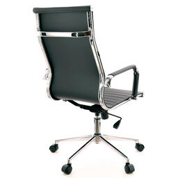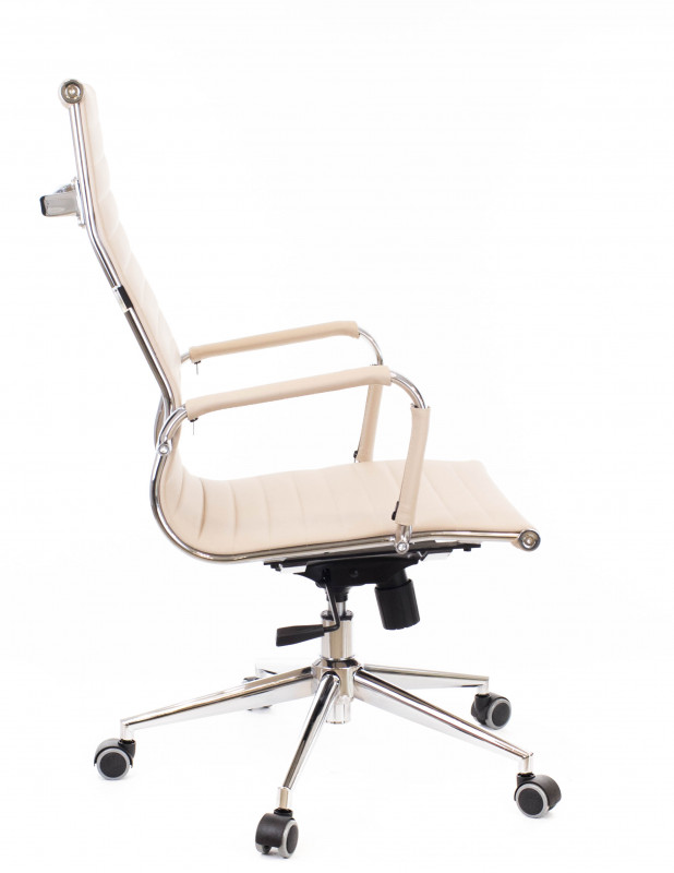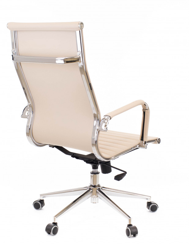 На спинке кресла есть специальный изгиб для поддержки поясницы, а декоративные строчки на нем не только придают изюминку дизайну, но и обладают небольшим массажным эффектом. Кресло сразу снабжено прорезиненными роликами для паркета и ламината. На металлических подлокотниках есть накладки, которые выполнены в той же обивке и цвете, что и кресло.