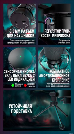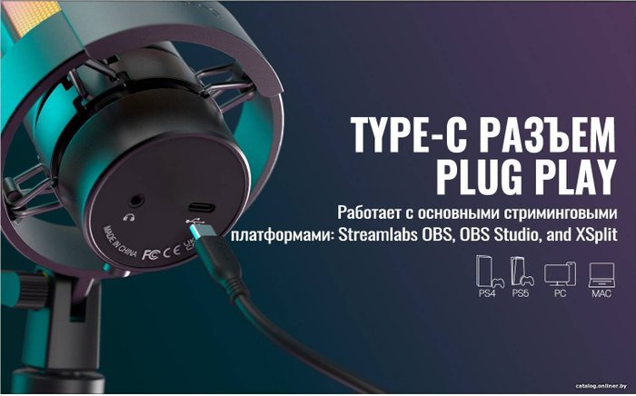 • Комплект поставки - поп-фильтр- антивибрационный держатель- кабель USB Type-C - USB Type-A- документация