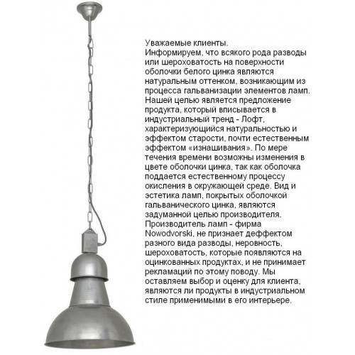 Подвесной светильник Nowodvorski HIGH-BAY zinc I zwis 5068