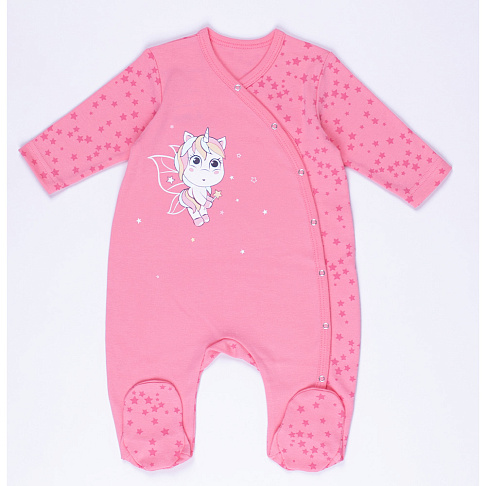 Мягкий хлопковый комбинезон с закрытыми ножками и забавным рисунком в виде единорожка отлично впишется в детский гардероб. Застёгивается на удобные кнопочки по всей длине. Комбинезон выполнен из натуральной неаллергенной ткани, приятный для кожи малыша, не вызывает раздражения и дискомфорта.
