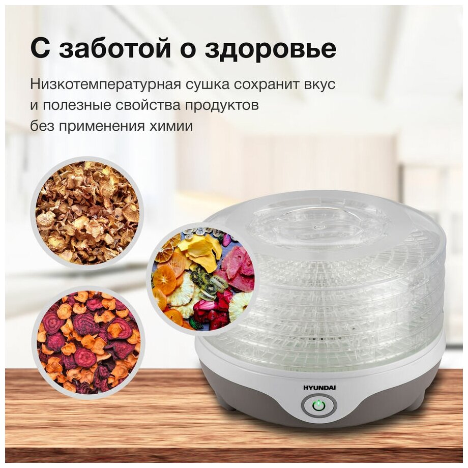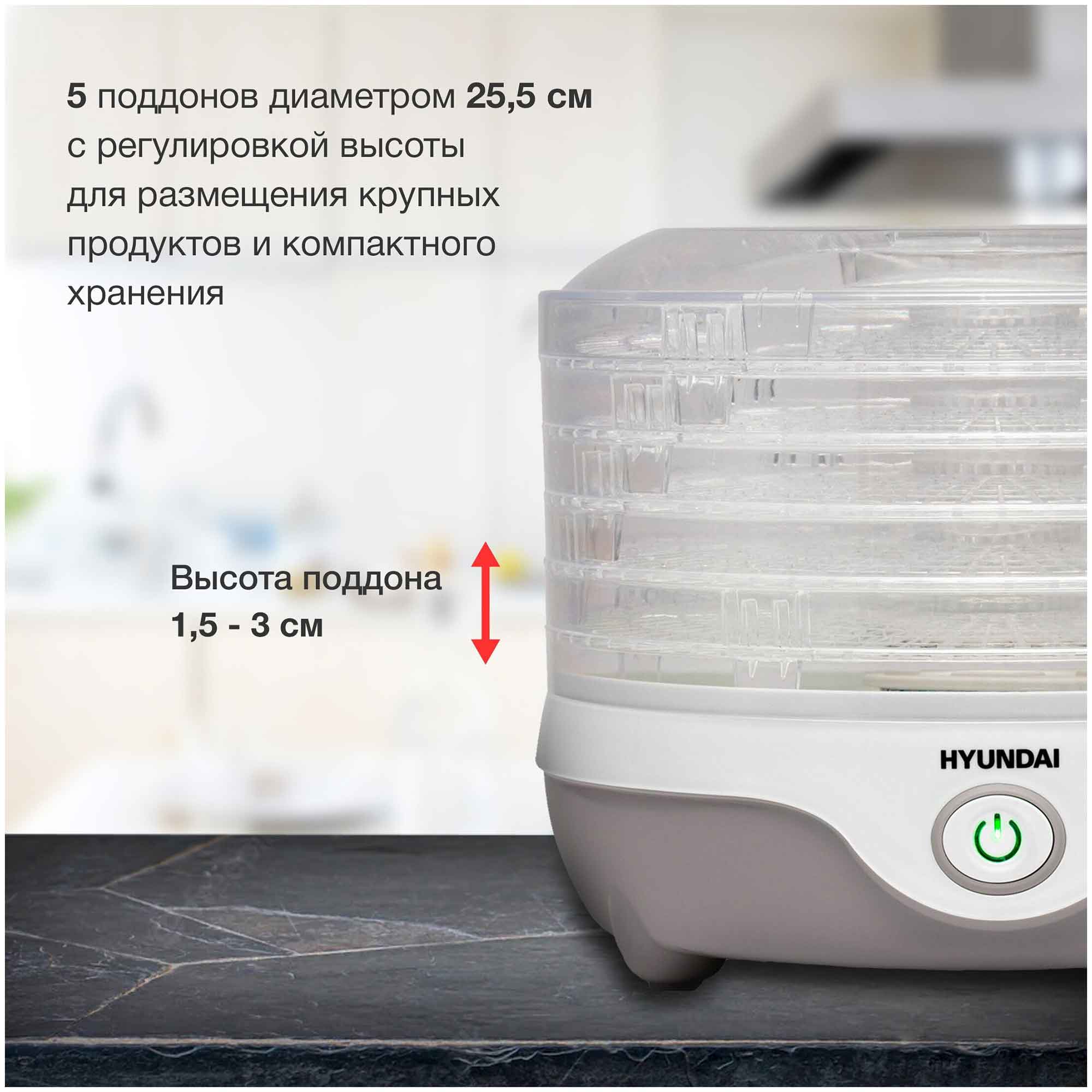 Описание товара Сушилка для фруктов и овощей Hyundai HYFD-0606 5под. 250Вт белый