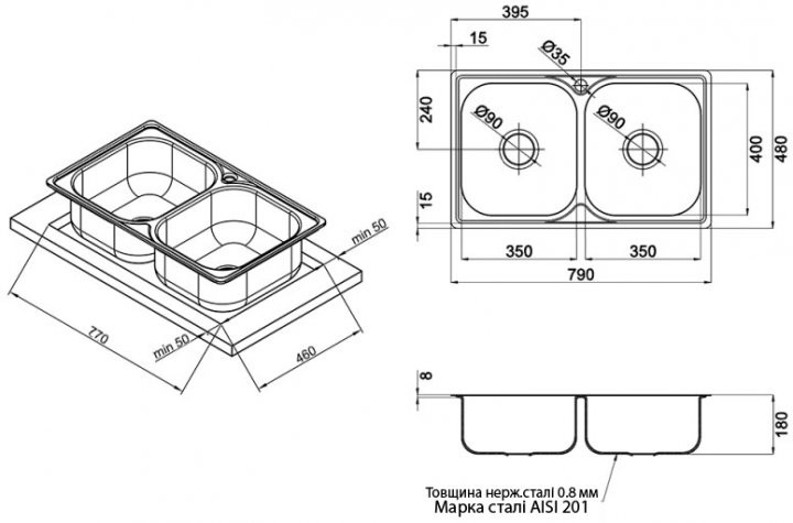 • Материал корпуса нержавеющая сталь / AISI 201 /