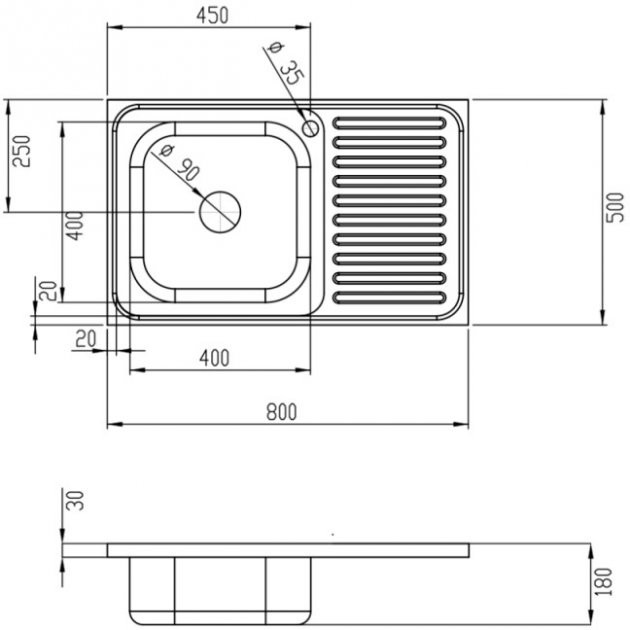 • Размеры основной чаши (ДхШхГ) 400x400x180 мм