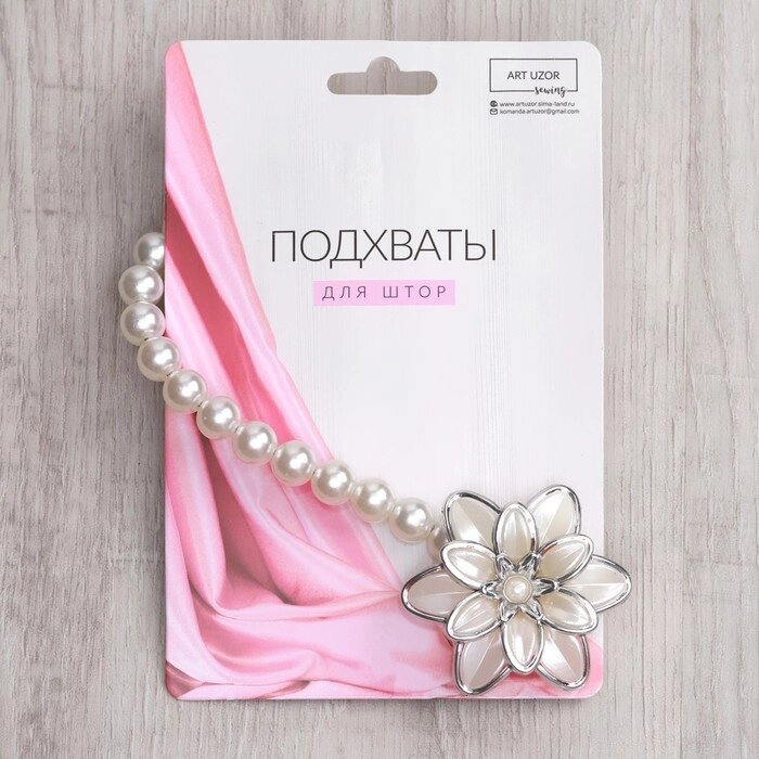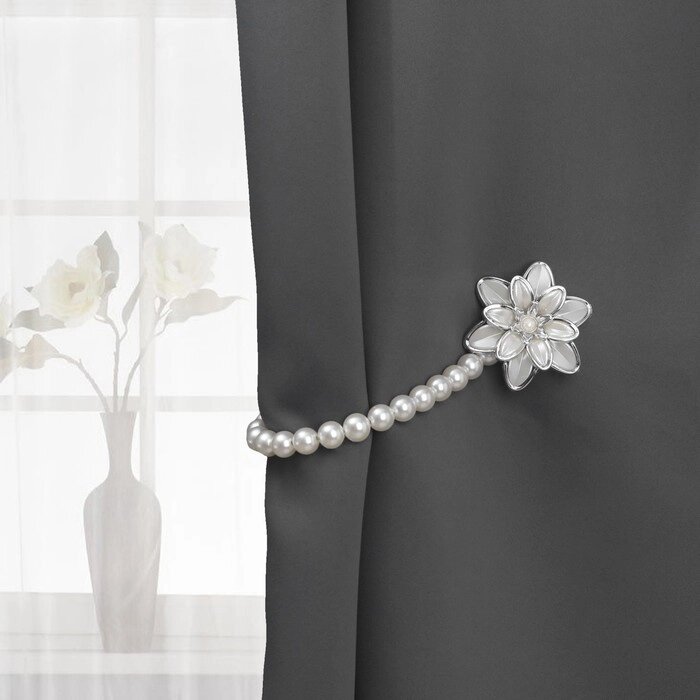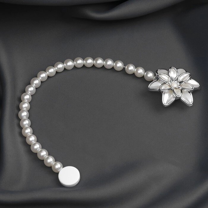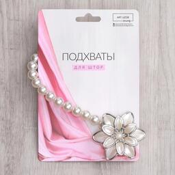 Подхват (1) для штор на бусах (1шт) цветок Георгин d6см серебристо-белый АУ