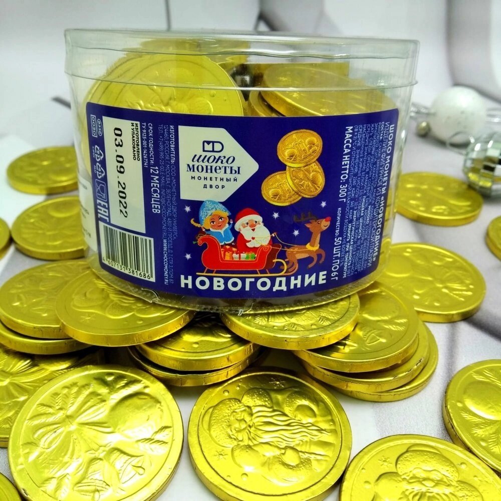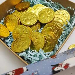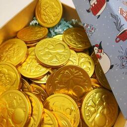 Золотые шоколадные монеты «Новогодние», набор 20 монеток (Россия)