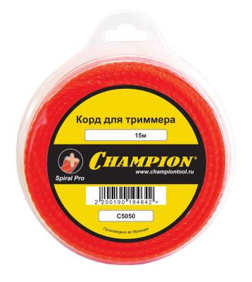 - Прочие особенности и свойства Корд Spiral Pro CHAMPION C5050 применяется при работе триммерами. Является режущим элементом и заправляется в триммерную головку. Леска различается по диаметру и форме сечения. Правильный подбор толщины лески и ее сечения для определенных работ существенно влияет на скорость кошения и износ лески. Корд представляет собой мононить с сечением в виде витого креста, имеет высокую износостойкость и отличную режущую способность. Подходит для подрезки толстых сорняков, лопухов, легко справится с зарослями жесткой травы. Выполнена из качественных материалов, имеет длительный срок эксплуатации.