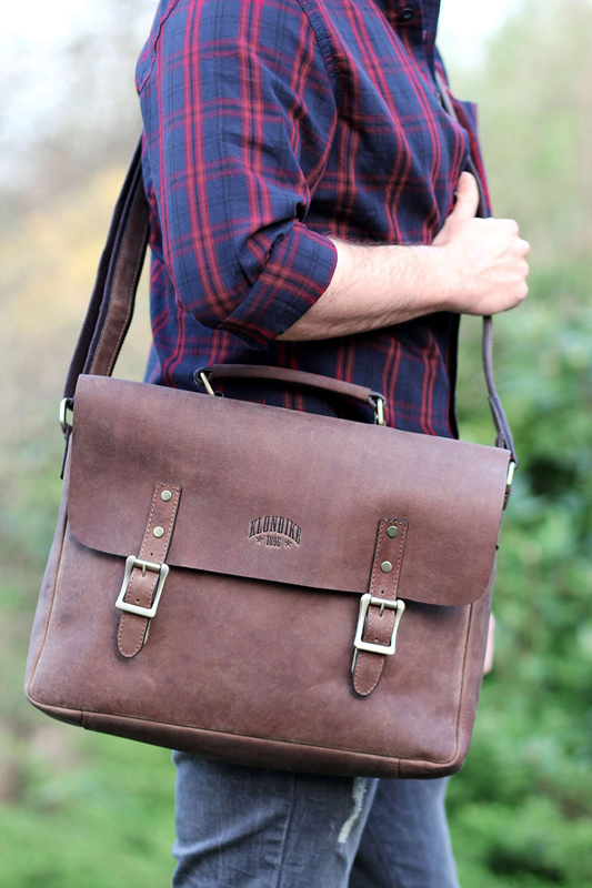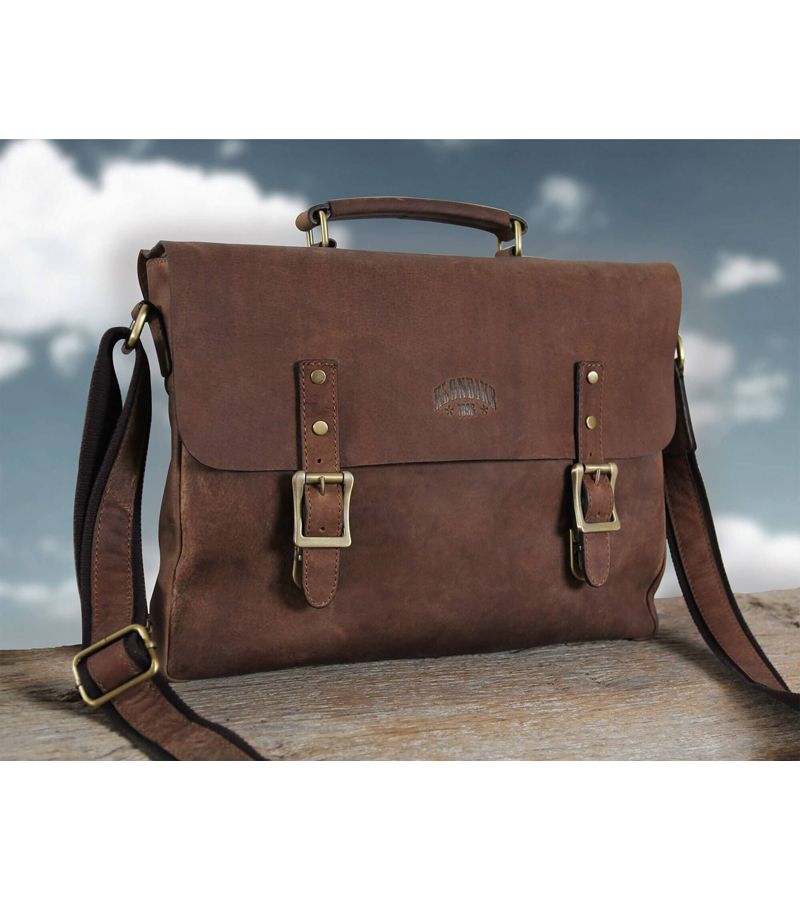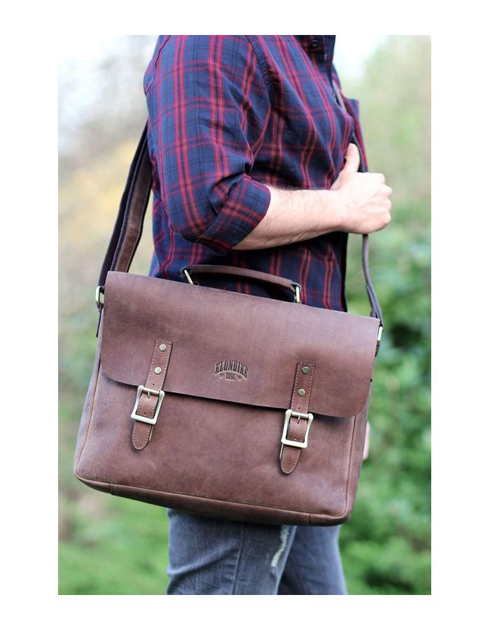 Сумка «Билл» является классическим образцом сумки фирмы «Klondike» в новой коллекции мужских сумок. В этой замечательной сумке из натуральной кожи очень удобно носить нужные Вам документы в университет или на работу. Эта сумка оснащена съемным регулируемым ремнем со смягченной частью для плеча, большим отделением на молнии, 2 подразделениями для ручек и дополнительным отделением. Элегантное тиснение «Klondike» на лицевой стороне и небольшое, ненавязчивое тиснение c надписью made with passion на тыльной стороне, мастерски сделаны вручную на высочайшем уровне. Дополнительный кожаный ремень сзади позволяет прикреплять сумку к чемодану. Прочные металлические части латунного цвета подчеркивают высокое качество продукта. Благодаря своим размерам (длина - 40 см, высота - 32 см и глубина - 7 см) сумка позволяет хранить многочисленные вещи, например, большую папку для документов и т.д. Эта сумка гарантирует содержимому вашей сумки особую защиту благодаря дополнительной молнии и высококачественным металлическим замкам, спрятанным за декоративными пряжками. Декоративная пряжка украшает внешний вид папки. Сумка фирмы «Klondike» – надежный компаньон на вашей стороне.