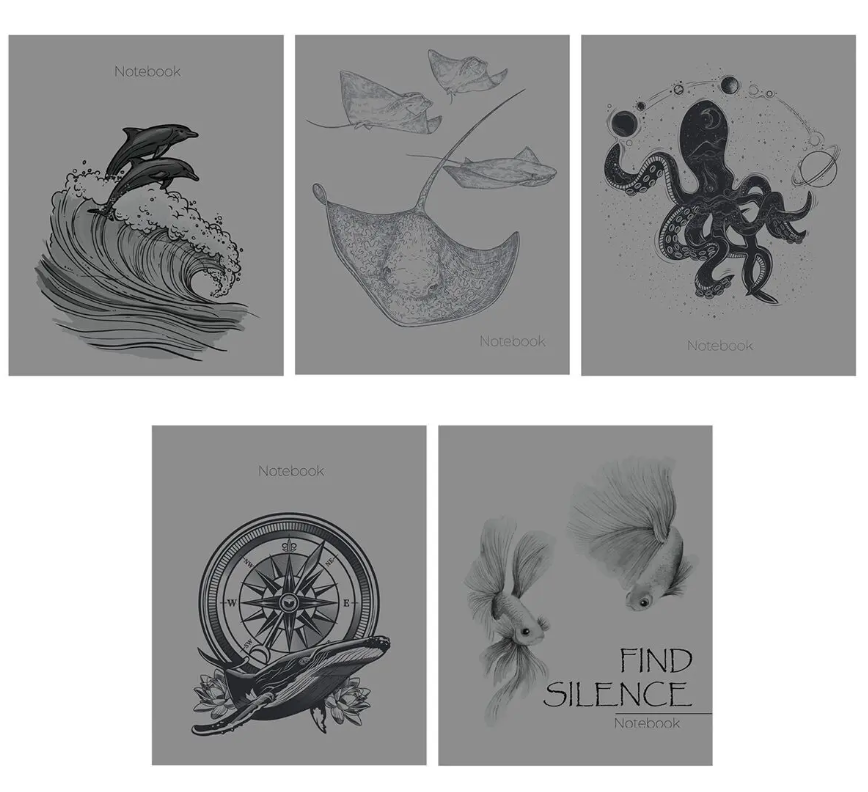 Тетрадь 48л. кл. скр. А5 "Графика", 5+0 (метал) Ак, 5 диз., арт. 11942/5