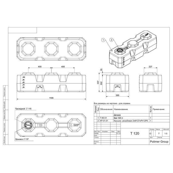Ёмкость прямоугольная, серия Т, 120 л, цвет белый