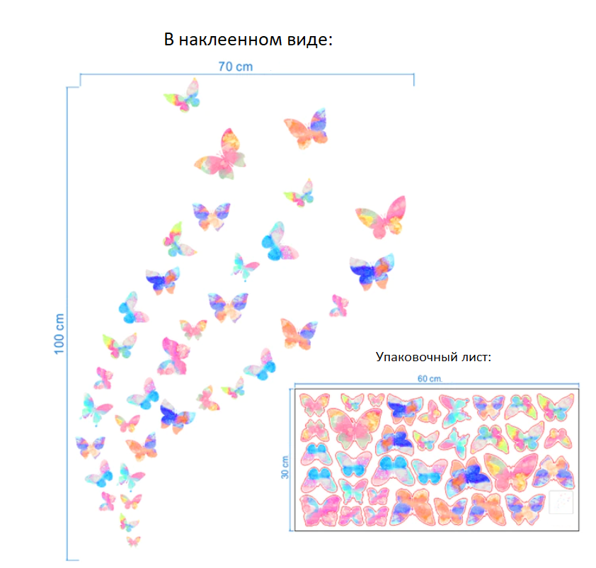 Интерьерная наклейка (стикер) для наклеивания на различные ровные и гладкие поверхности, в т.ч. на обои, стекло, зеркало, плитку, стену, мебель, дверь, пластик и т.д.