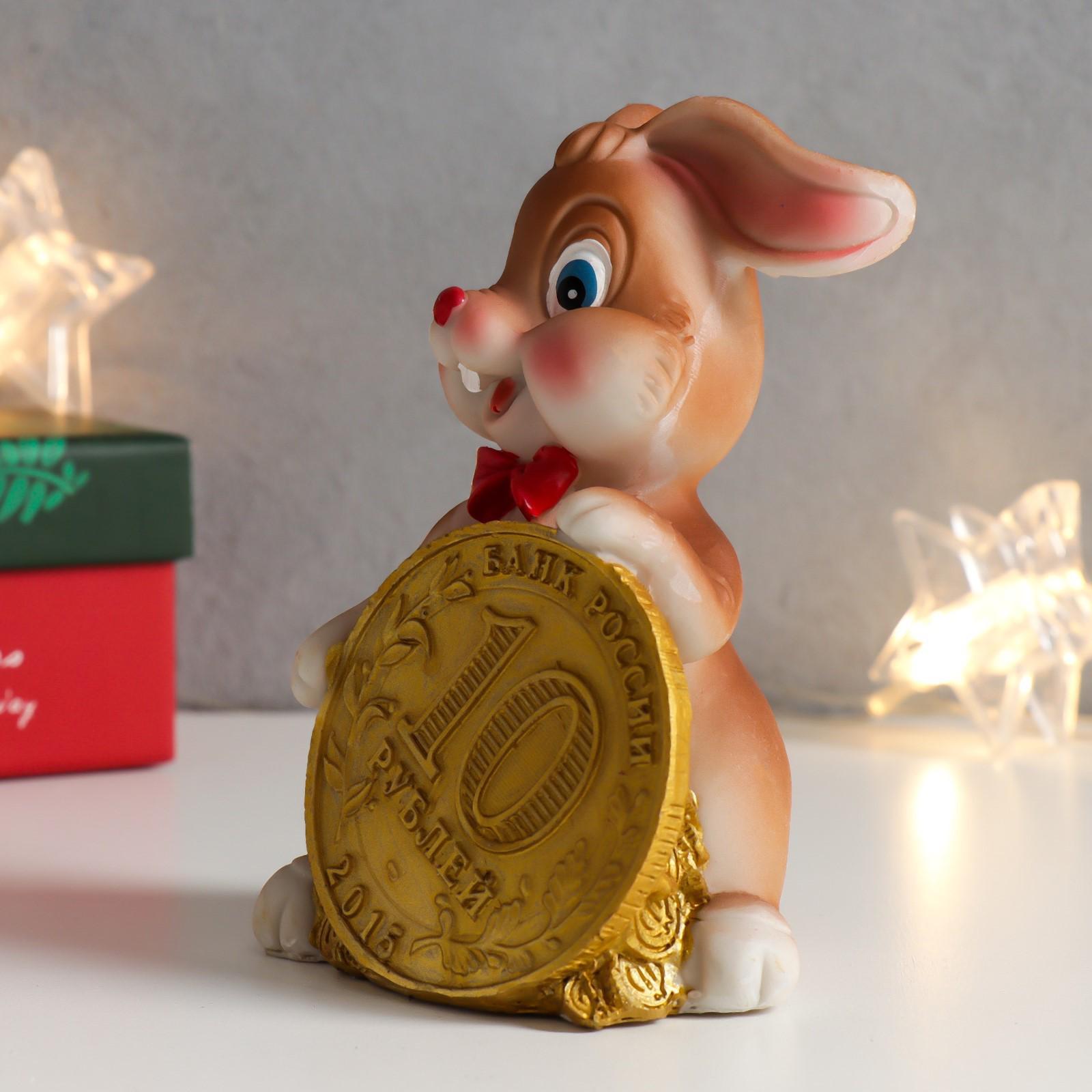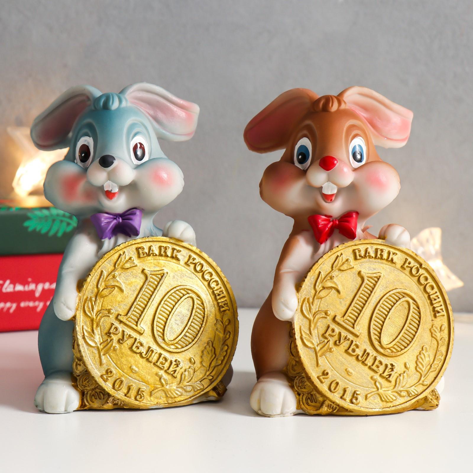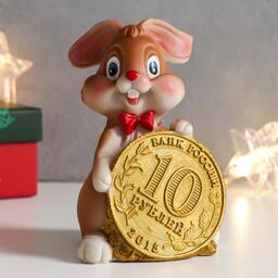 Копилка полистоун "Зайчик в монетой" МИКС 8,3х8х12,7 см