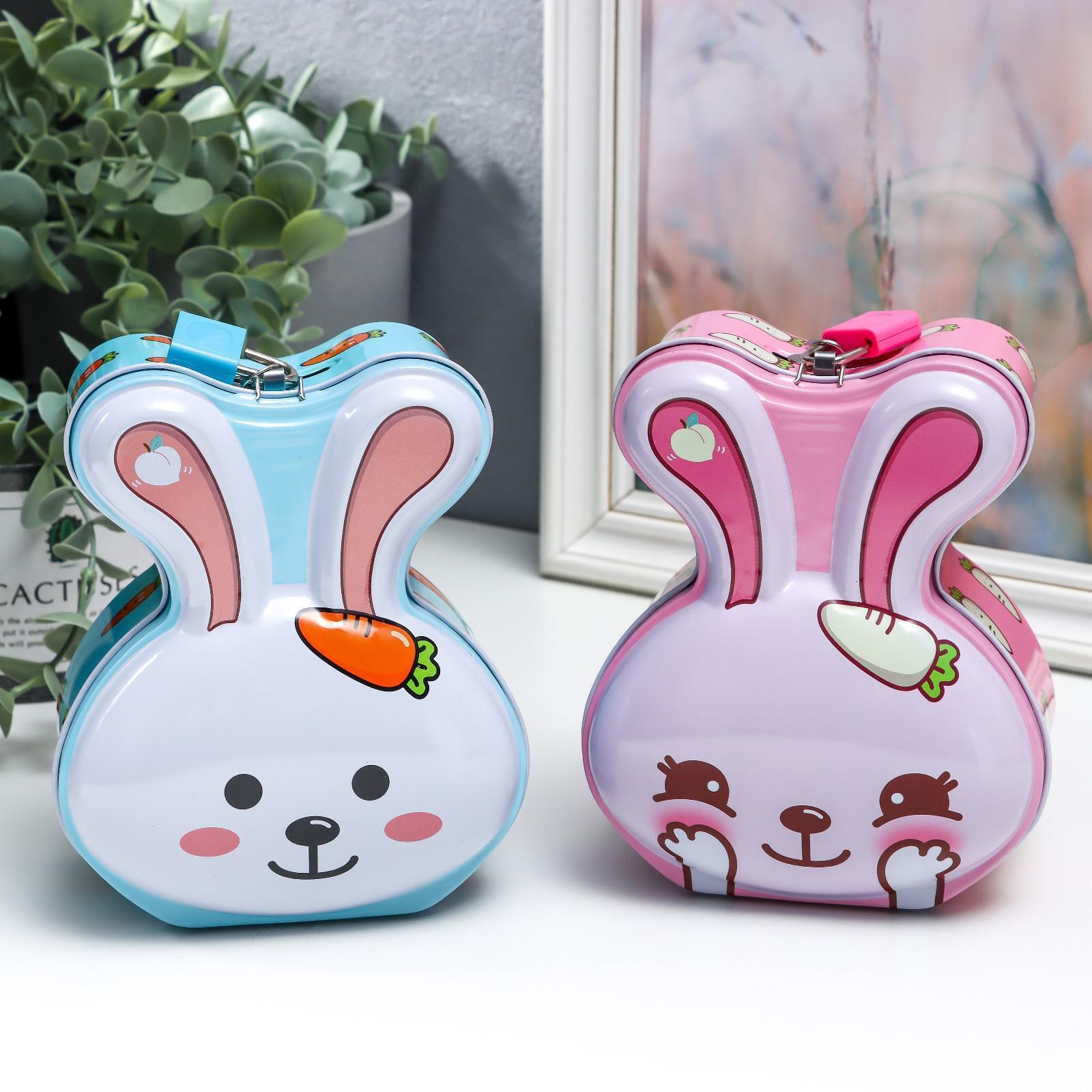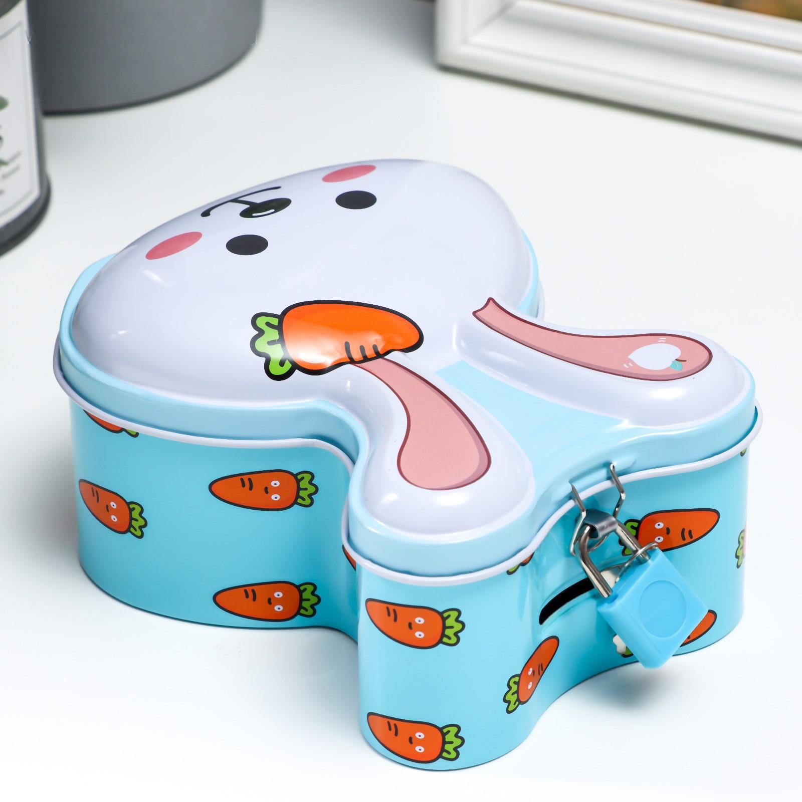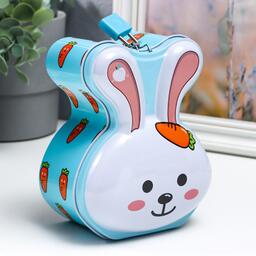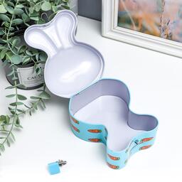 Копилка металл с замочком "Зайка с морковкой" МИКС 14,8х8х12,3 см