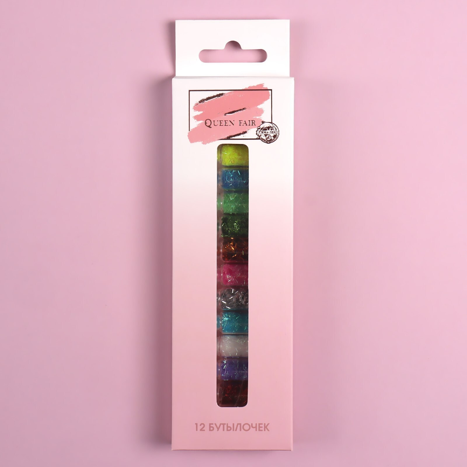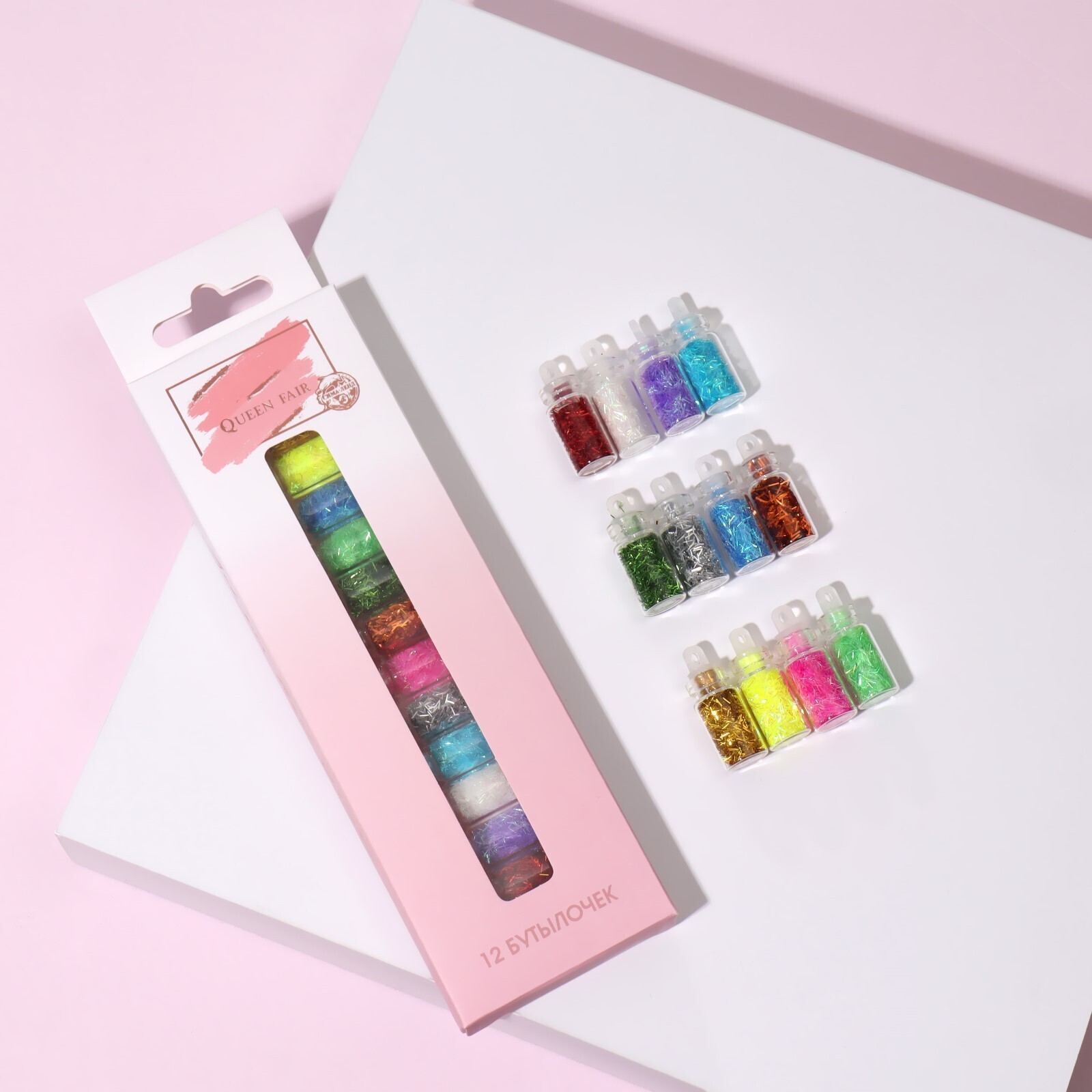 Стружка для декора, 12 бутылочек, в картонной коробке, разноцветная