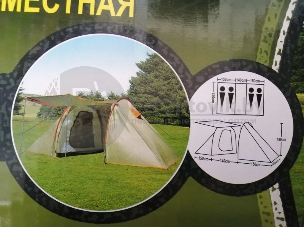 Палатка туристическая LanYu 1913 двухкомнатная 4-х местная 150140150х230х180 см с тамбуром