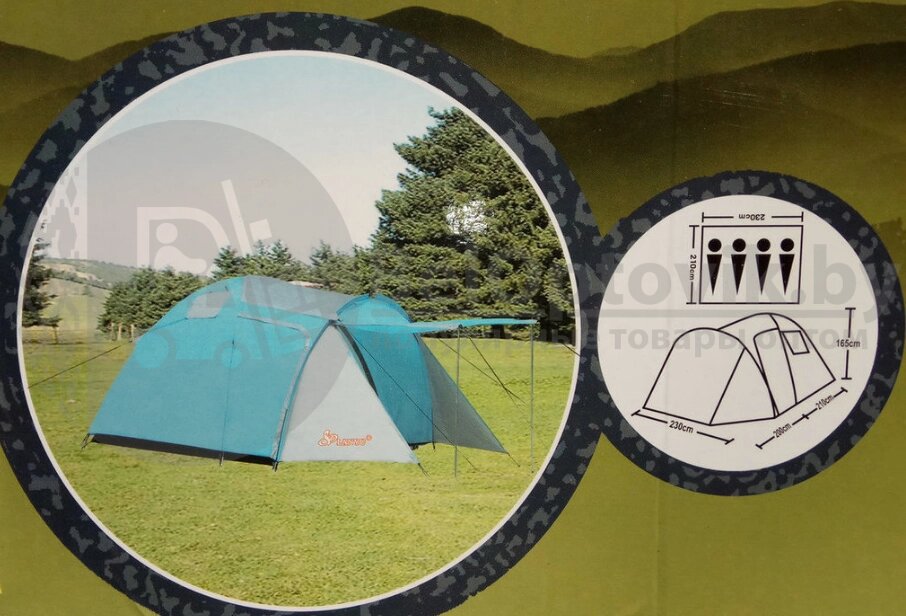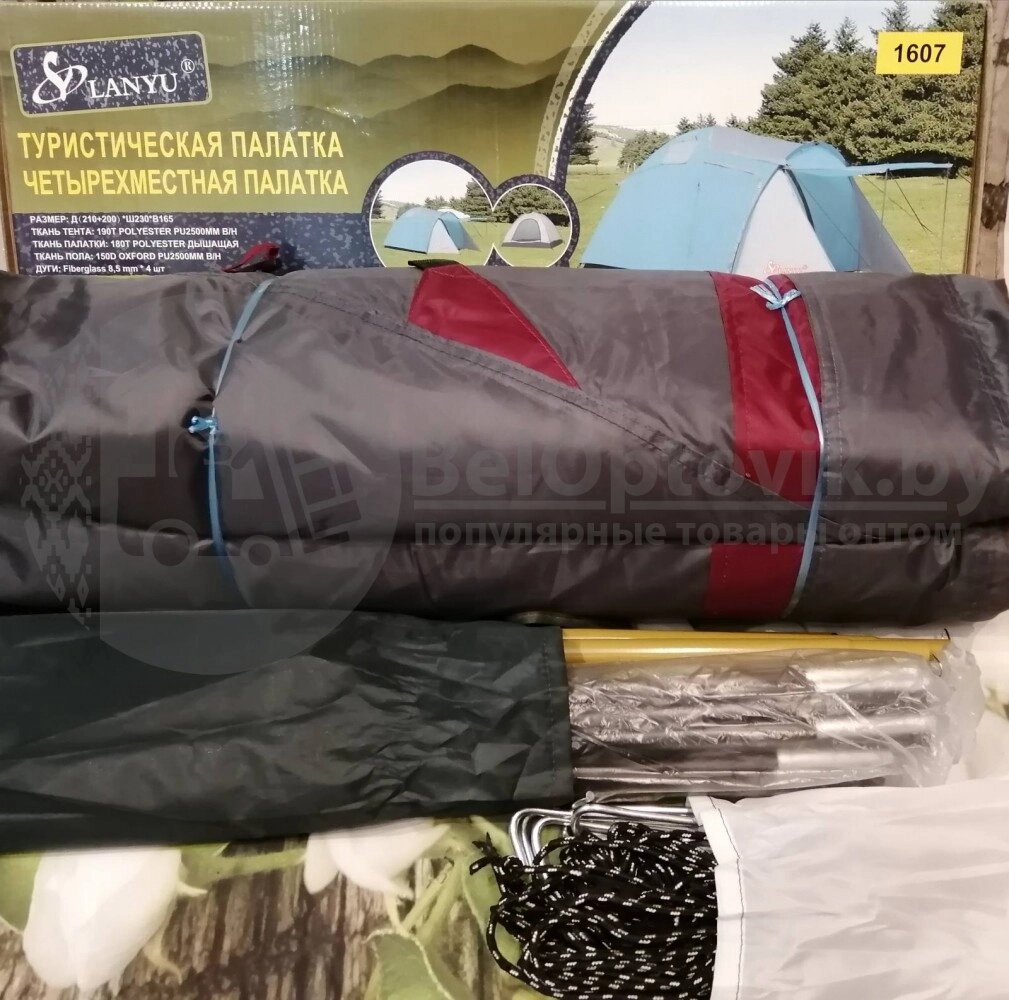 Палатка туристическая LanYu 1607 4-х местная 210200х230х165 см тамбурнавес