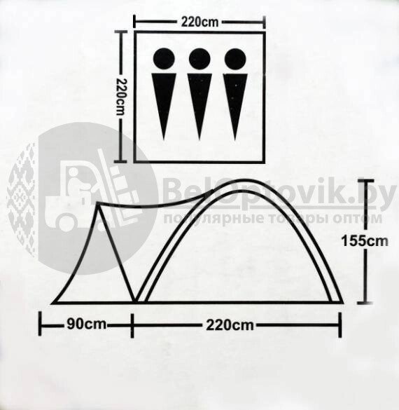 Палатка 3-х местная LanYu 1637 туристическая 22090x220x155см с тамбуром