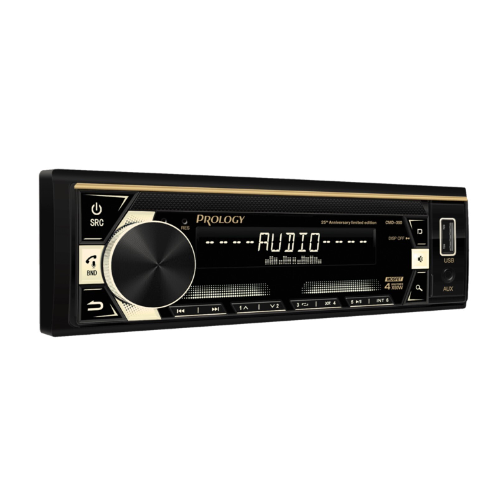 PROLOGY CMD-350 — FM / USB ресивер с Bluetooth и встроенным DSP - аудиопроцессором, стандартного размера 1DIN, который обеспечивает прием радиостанций в диапазоне FM / УКВ / AM и воспроизведение медиафайлов MP3, WAV, и FLAC форматов, записанных на USB накопители, передачу звука с внешних источников через линейный аудиовход и беспроводной интерфейс Bluetooth. Поддерживается управление мобильным телефоном через интерфейс Bluetooth (ver. 4,2).