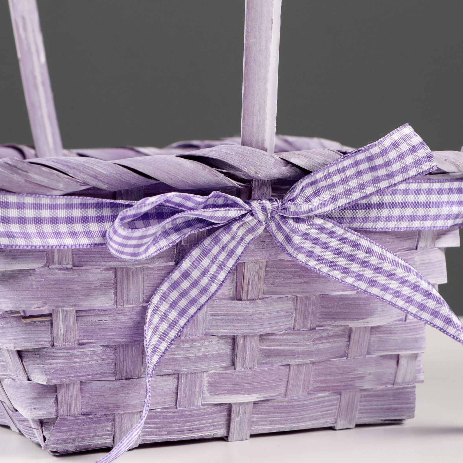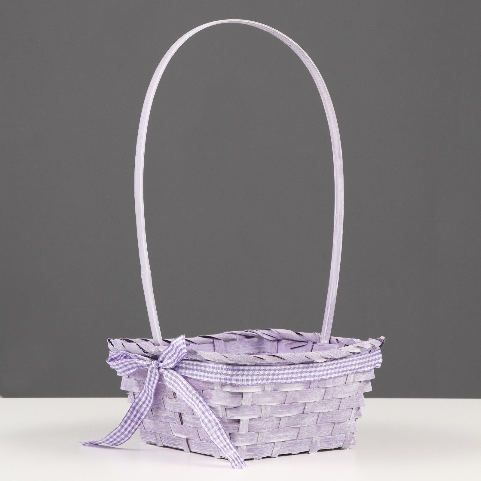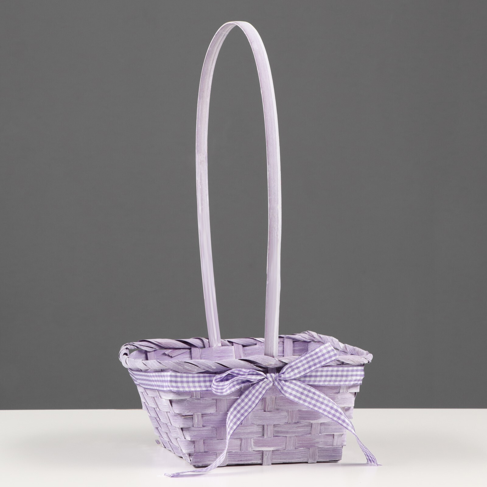 Корзина плетеная, с бантиком, фиолетовая,бамбук, 20х20х10, h=35,5 см
