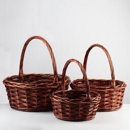 Набор корзин плетёных, ива, 3 шт., коричневый цвет, высокие