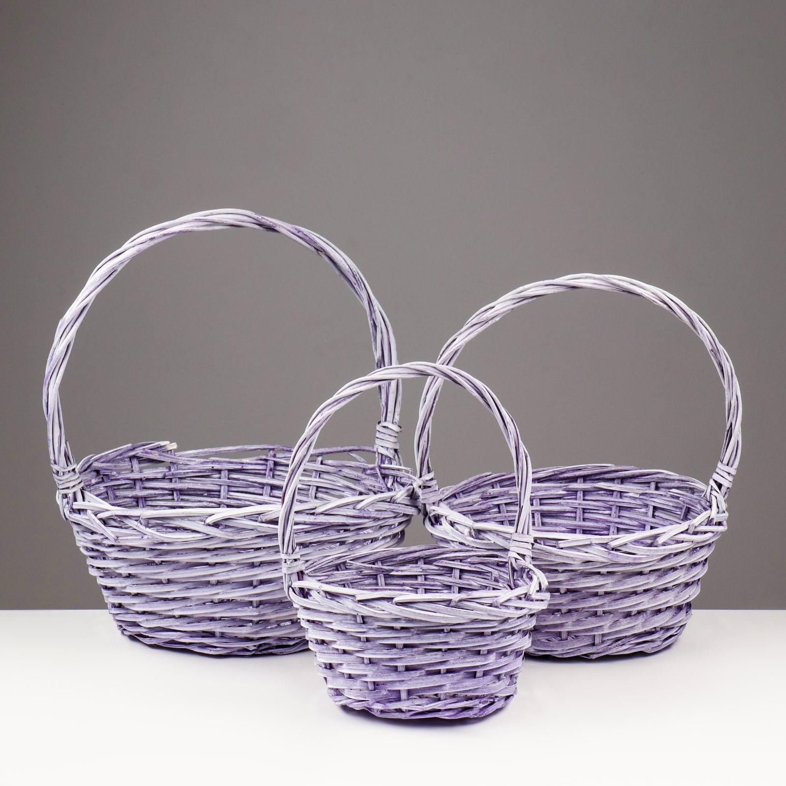 Набор корзин плетёных, 3 шт, 38x17x42 см, сиреневый