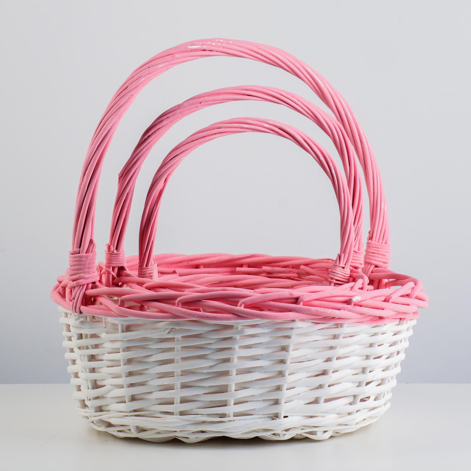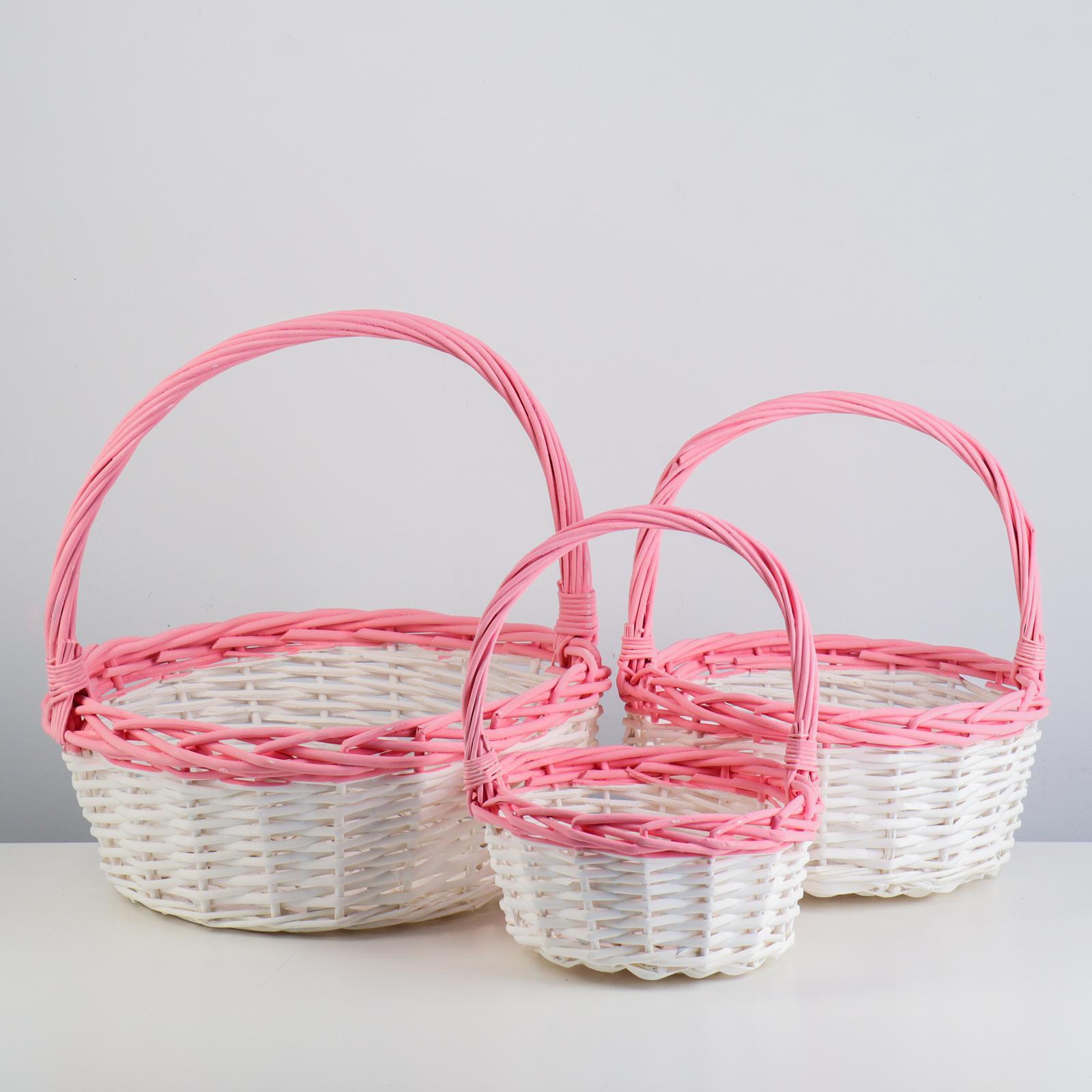Набор корзин плетеных, ива, D36х14/39, D29х12,5/33, D22х11/28 см, белый, розовый, 3 шт